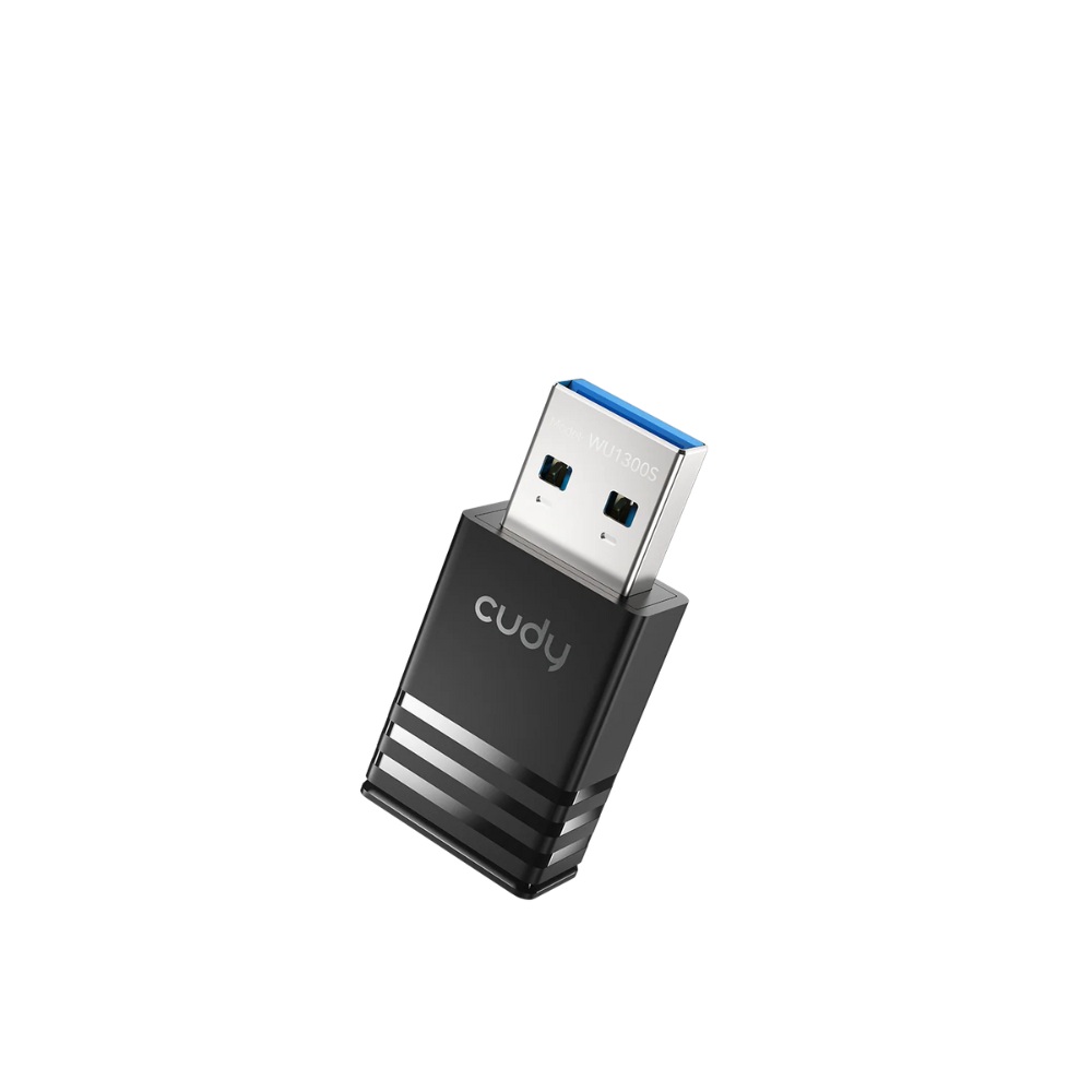 Upgrade your PC or laptop with the Cudy AC1300 dual‑band USB Wi‑Fi adapter for fast wireless speeds on both 2.4 GHz and 5 GHz bands and broad OS compatibility.