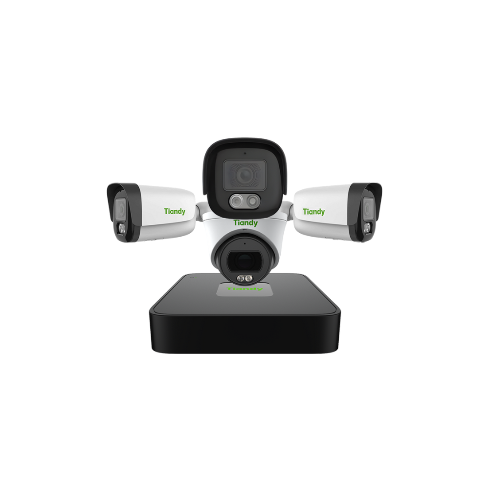 The TC-KIT R3105 is a complete Tiandy IP video surveillance kit that includes a 5-channel NVR recorder (TC-R3105) with 4 PoE ports and four 4 MP security cameras — three TC-C34QN outdoor bullet cameras and one TC-C34XNindoor turret camera. This plug-and-play system supports high-definition recording up to 4 MP with H.265/H.264 compression, PoE power and network over a single cable, and infrared night vision for reliable day/night monitoring. Ideal for homes or small businesses seeking robust and easy-to-install security coverage